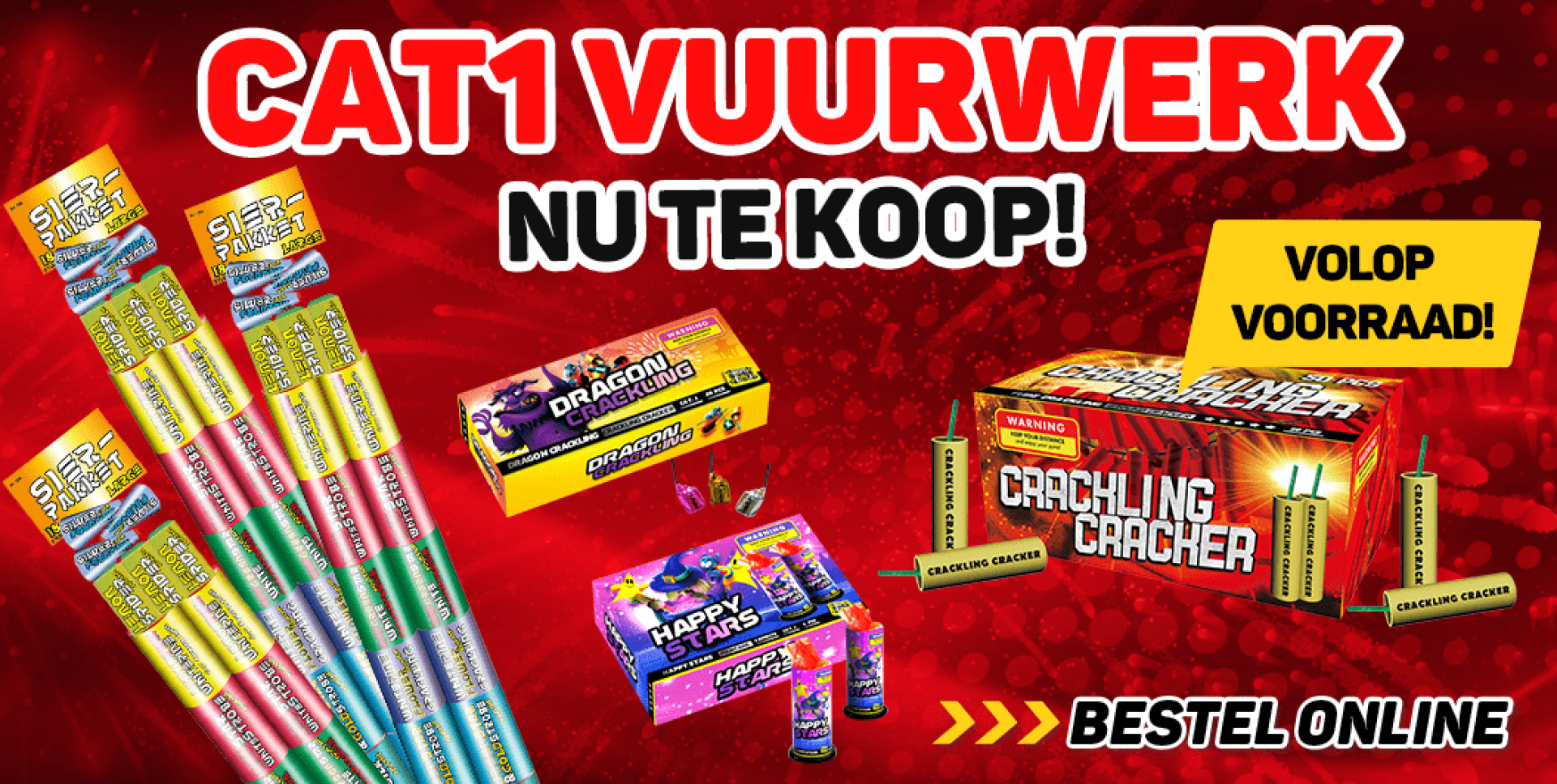 Klik hier om Categorie 1 vuurwerk te bestellen en kom afhalen Zaterdag 7 of 28 Februari tussen 11:00 - 13:00! Let op alleen als er in het winkelwagentje categorie 1 zit komt 7 Februari beschikbaar bij het afrekenen !