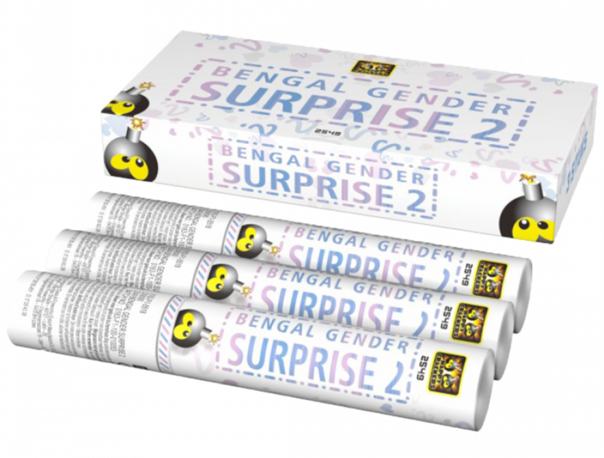 Drie gender reveal Bengaalse fakkels in een doos: Om het spannend te houden tot het laatste moment zal deze bengaalse fakkel eerst branden in witte glitters waarna deze langzaam over zal gaan in een blauwe vlam...